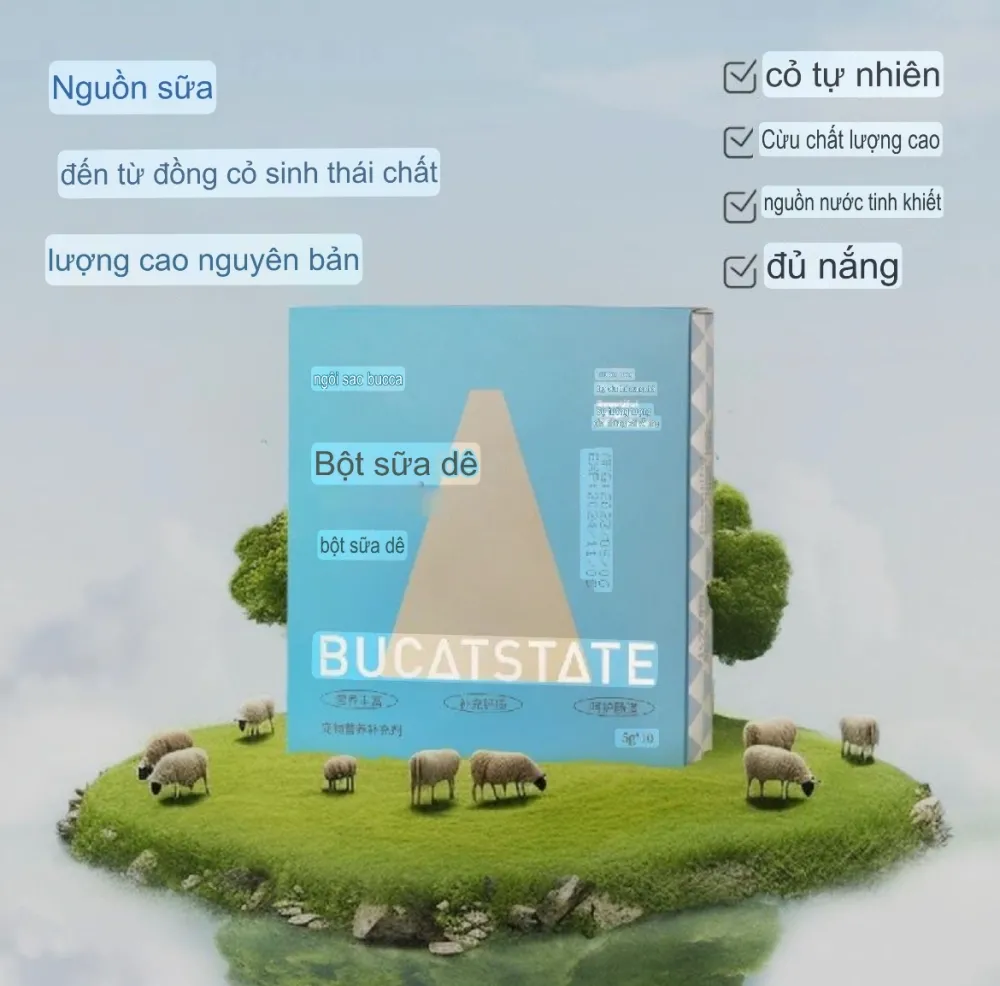 Bột sữa dê Bucatstae làm từ sữa dê cao cấp và bổ sung các loại dinh dưỡng như sữa mẹ.