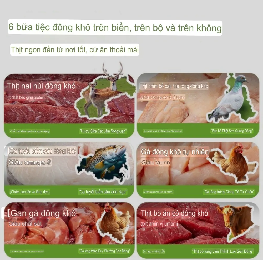 Thức ăn đông khô 6 loại thịt đông Bucatstate với hơn 55+ Thành phần được lựa chọn cẩn thận