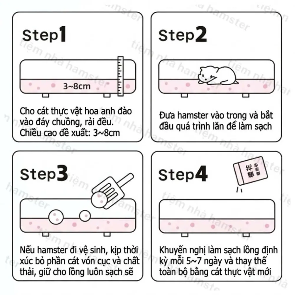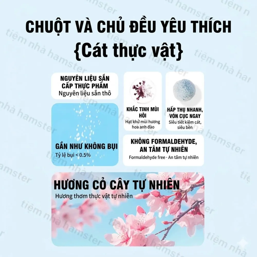 * Tỉ lệ bụi < 0.5%, bảo vệ hệ hô hấp nhạy cảm của các bé Hamster.