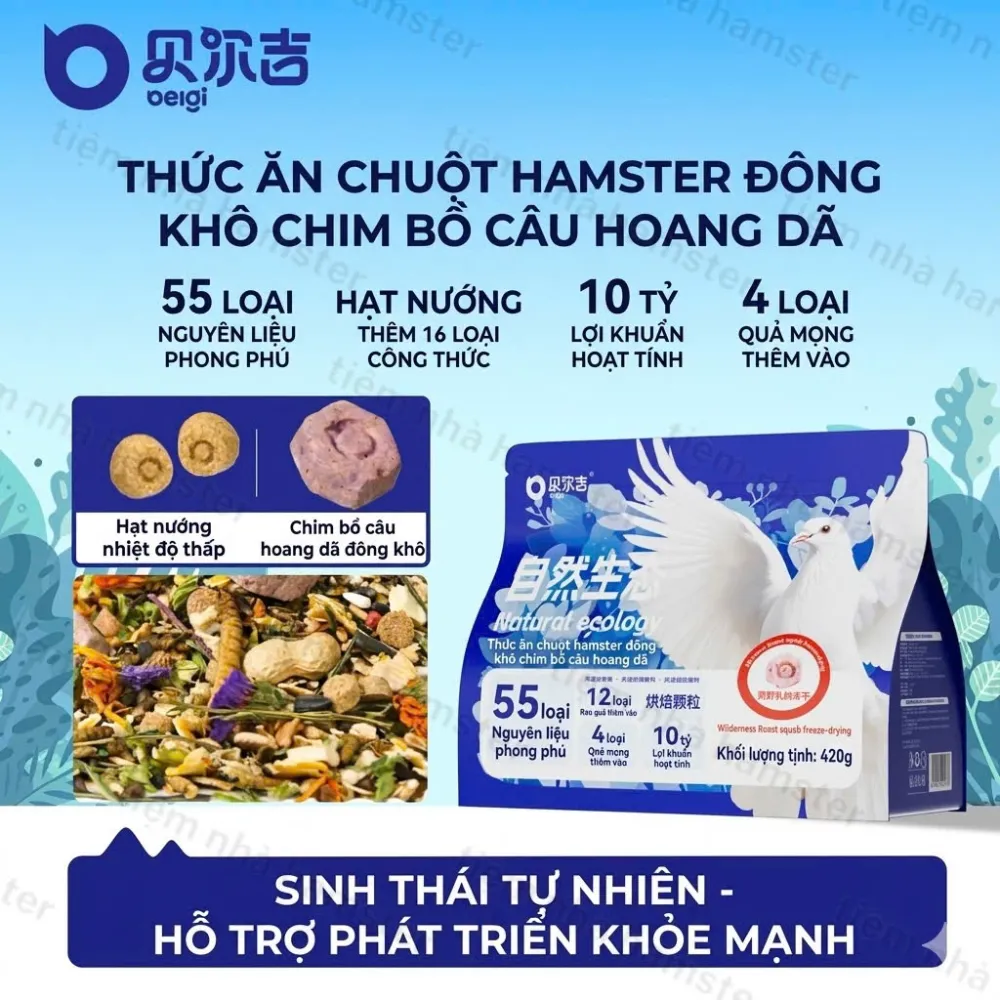 Thức ăn cho chuột hamster sấy khô tự nhiên thân thiện với môi trường từ chim bồ câu hoang dã bổ sung10 tỷ lợi khuẩn ,giúp đẹp lông